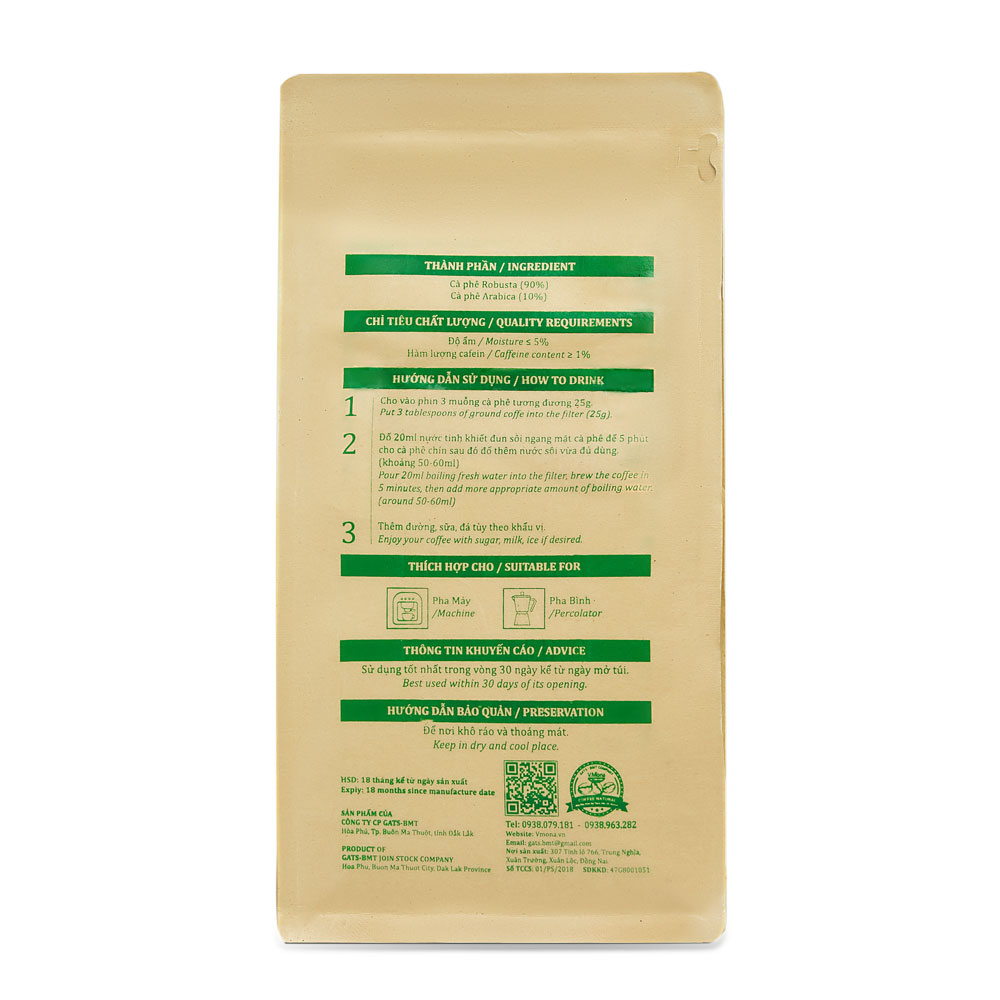 Cà Phê Hữu Cơ V.Mona - Rang Xay 500g